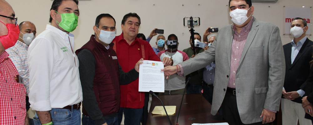 CIUDAD VICTORIA, Tams., Viernes 31 de Diciembre 2021.- Dirigentes y representantes de los partidos MORENA, PT y PVEM registraron ante el IETAM su convenio de candidatura común, para formalizar su intención de conformar un mismo equipo ganador en las próximas elecciones donde se renovará la gubernatura del estado.