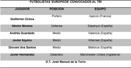 FUTBOLISTAS ‘EUROPEOS’ CONVOCADOS AL TRI |