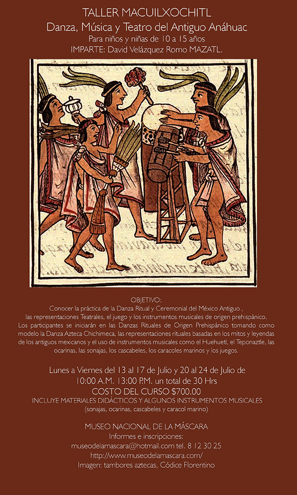 MACUILXOCHITL taller de Danza, Música y Teatro Antiguo Anáhuac Publicado en 14 julio, 2015 por Orquídea Cruz Coria